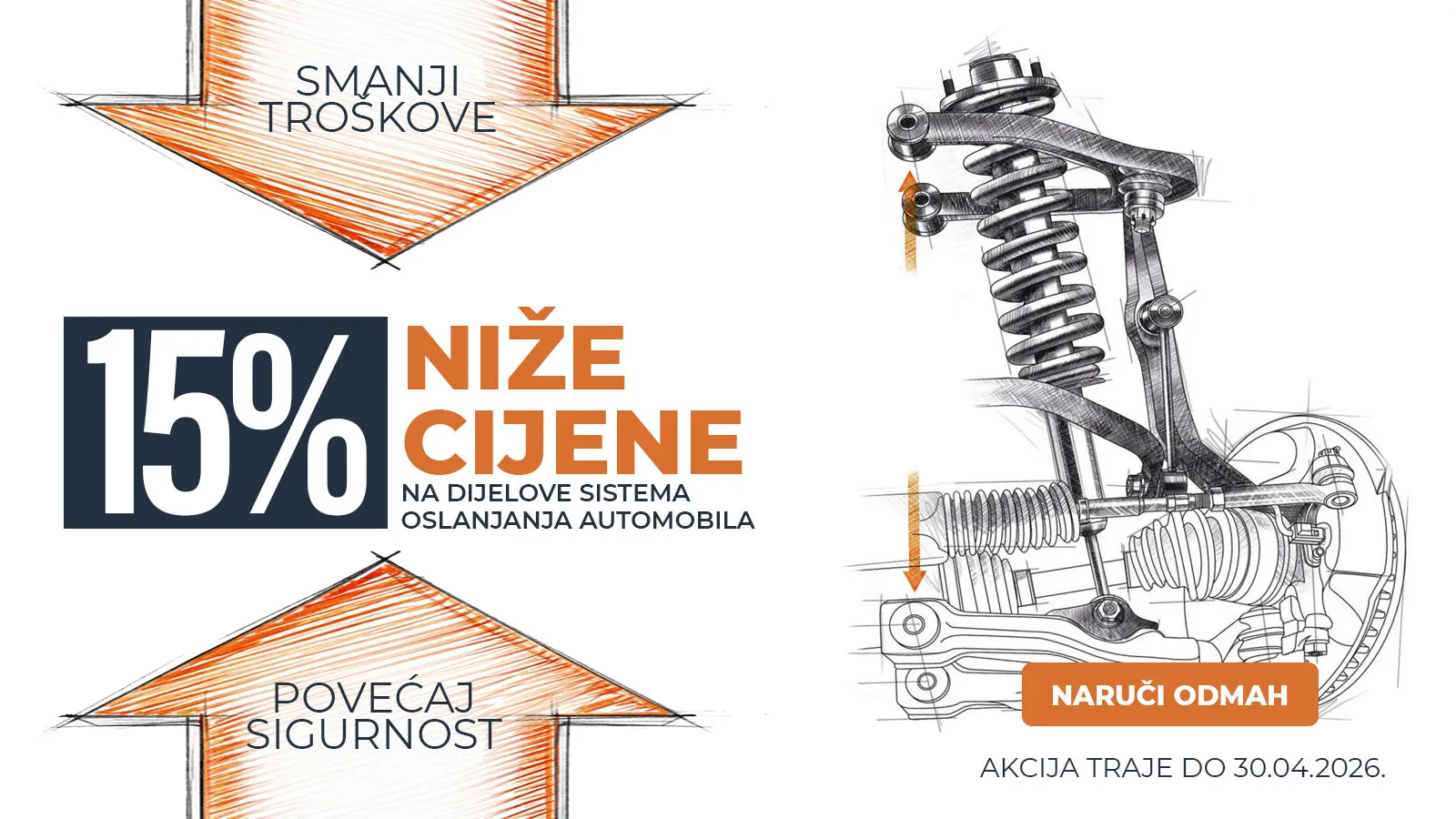 od 8:00 do 18:00 i subotom od 8:00 do 14:00. Svi automobilski dijelovi na jednom mjestu: amortizeri, filteri, plivajući zamajac, motorna ulja, set kvačila, letva volana, alternator i drugi rezervni dijelovi za vaš automobil. Savremena internetska prodavnica automobilskih dijelova, alata i opreme nudi najširi dijapazon dijelova i cijena kroz efikasno pretraživanje najboljih rezervnih dijelova za vašeg četvorotočkaša, po pristupačnim cijenama, uz besplatnu isporuku. Na pravom ste mjestu!
